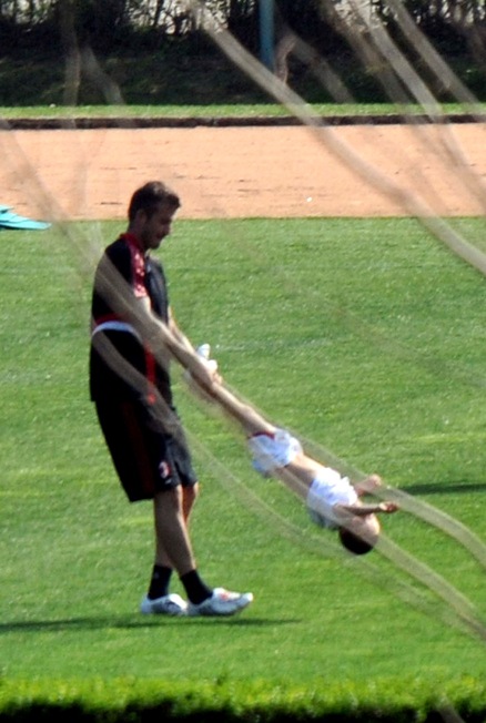 Se tomó un tiempo en su apretada agenda para pasar un rato con sus hijos Cruz y Romeo. Aquí podemos verlos jugando en un parque de Milan, Italia.